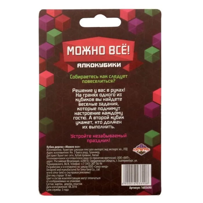 Купить кубик "можно все", алкокубики для принятия решений от 60 руб. с доставкой до пункта выдачи в Сергаче. Интернет магазин ДекаМаркет. Оплата при получении.
